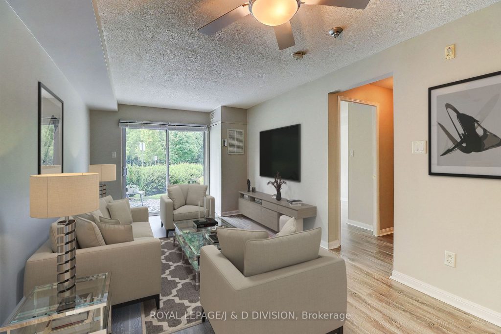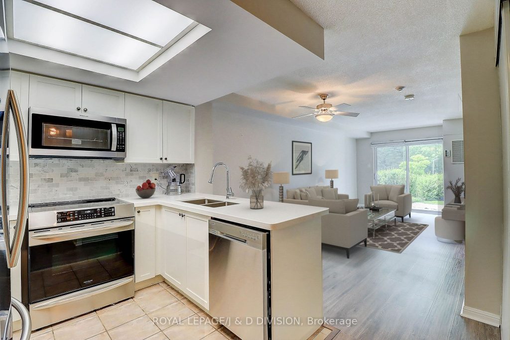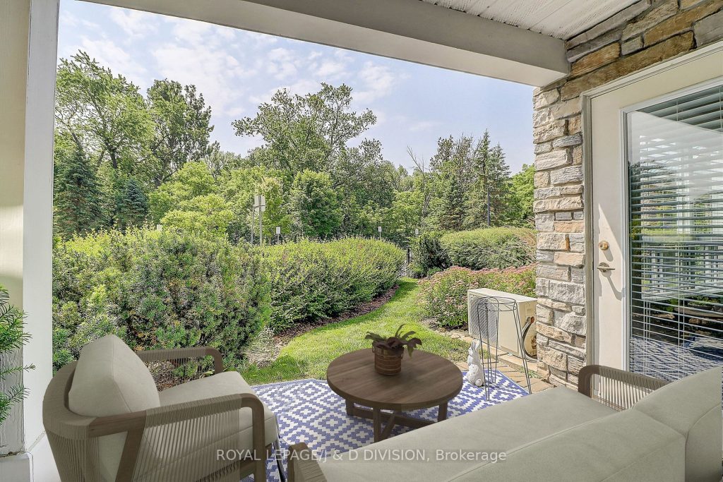 Rarely available Ground floor suite at Reflections On Bogart Mill with a beautiful terrace and garden. Located steps from the entrance to the stunning walking trails this coveted location is know for. The updated 1 bedroom + den suite is an excellent option for those who are looking to downsize and eliminate stairs yet appreciate outdoor and garden space. Direct access to the large terrace from the living room and bedroom. Some of the recent upgrades include: Hardwood floors, Maytag stacking washer and dryer, New AC unit, Frigidaire induction stove, Samsung dishwasher, Whirlpool built-in microwave and Samsung side-by-sdie fridge with bottom drawer freezer.